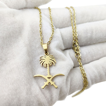 Tùy chỉnh thực hiện Sliver mạ saudi arabia KSA cây cọ bản đồ Vòng cổ